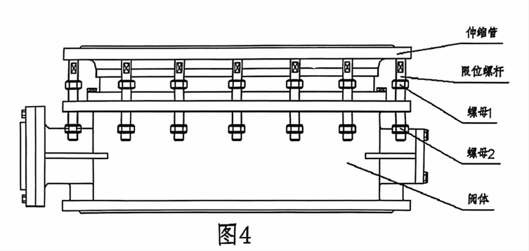 b.Rotate nut 2 symmetrically and evenly to press against the valve body flange, then tighten nut 1 (see Figure 1) to prevent extension/retraction of the flexible pipe. If the pipeline requires free extension/retraction of the flexible pipe for thermal compensation due to temperature differences, loosen both nuts 1 and 2. Ensure the circumferential distance dimensions of nuts 1 and 2 remain consistent (see Figure 4).