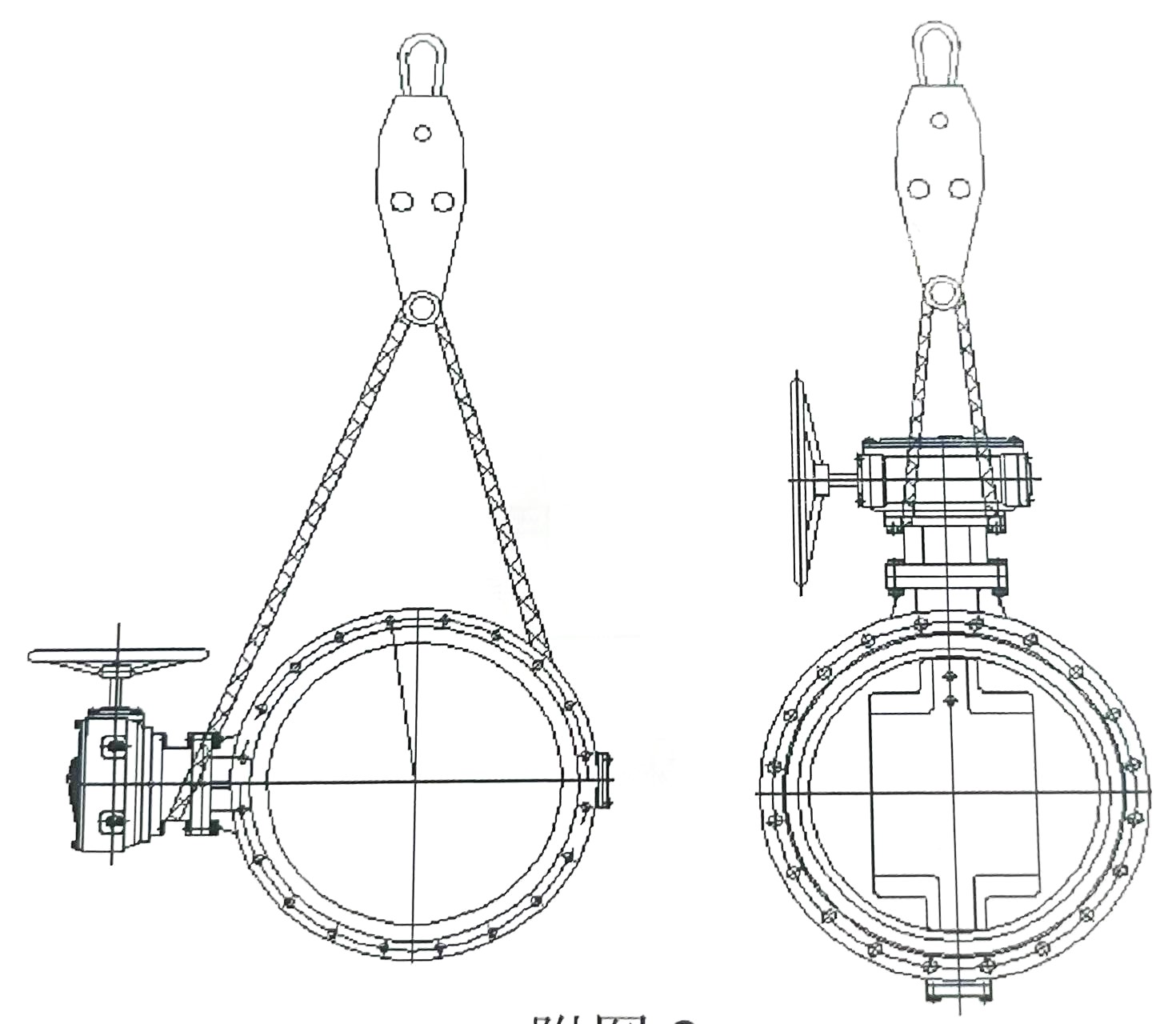 1. Select appropriate lifting equipment (fasteners, hooks, lifting ropes) based on valve weight. Lifting method shall follow Figure 2.